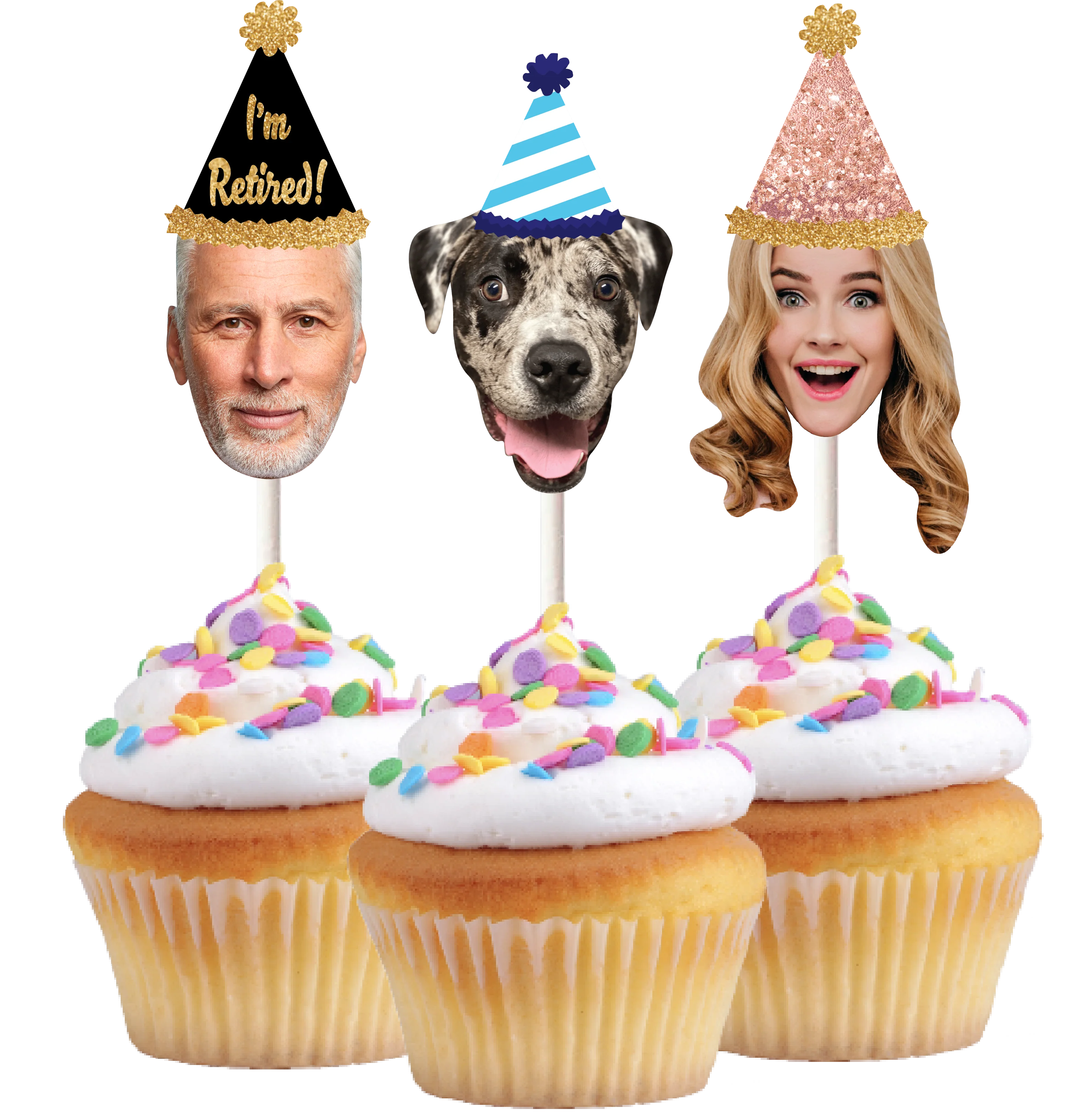 These custom photo cupcake toppers are the perfect finishing touch for your next party! Photos are approximately 3.5” tall printed with waterproof ink on high quality photo media and come attached securely to 4" lollipop sticks. Complete the look with our party hats! TO...- From $19.00