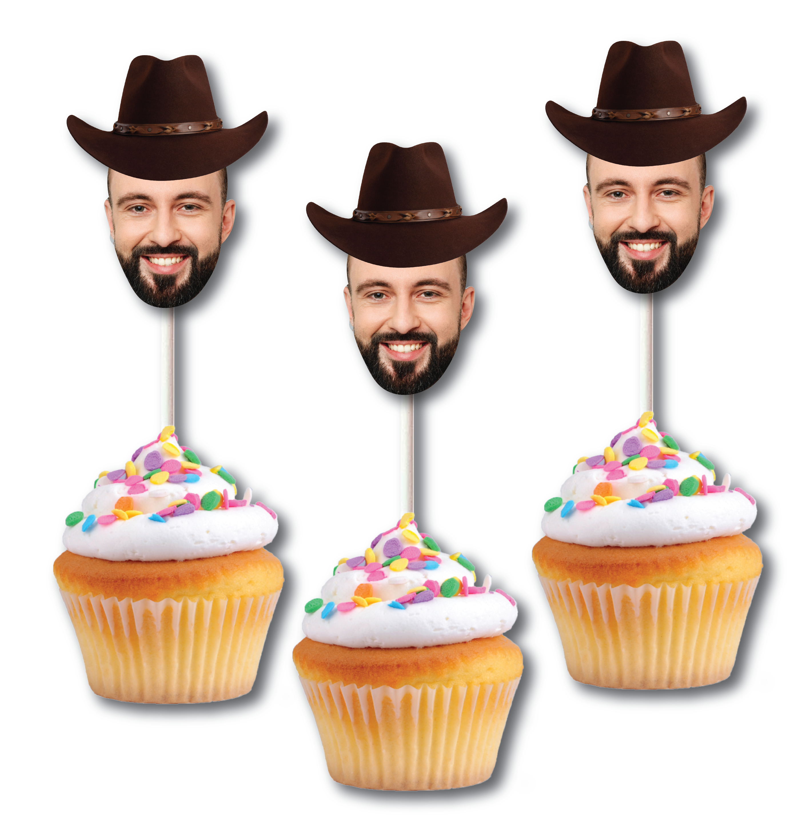 • Cupcake toppers: 3.5” face on a 4” stick